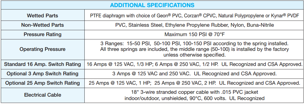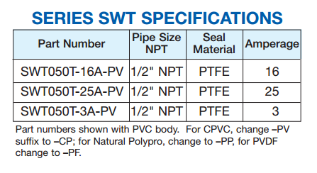 PVC C-PVC PP PVDF本體;1/2”NPT連接;其它連接咨詢POM。